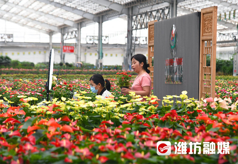 青州市花卉小镇内,电商销售人员在花丛中直播带货。 02 潍坊农品 远近闻名 谷贱伤农,是传统农业的痼疾。然而,秉承“质量兴农、创新求变”观念的潍坊,却能创造出高品质、高附加值的农产品。品牌强农,是农业高质量发展的迫切要求,也是提升农业竞争力的必然选择。一个西瓜撑起一片产业,一颗番茄带富一方农民,一根萝卜创造一段传奇……品牌二字重若千钧。 “烟台苹果莱阳梨,不如潍县萝卜皮。”很长时间以来,潍坊农品美名远播。昌邑大姜、昌乐西瓜、青州花卉、坊子区都市休闲农业、峡山区有机蔬菜、滨海区盐碱地特色农业……都成为远近闻名的农产品品牌。 “郭牌西瓜弃产量、求质量,保证一蔓一瓜,只售头茬瓜,不使用激素,施用自制有机肥料,等间距整理瓜蔓,严格控制授粉位置,精确把握授粉时间,严格控制水、肥、光照时间及大气流向,保证西瓜‘最原始’的口感。”郭牌农业科技有限公司周村项目负责人李仲夏说。单个西瓜售价百元且供不应求,就是品牌强农的最好佐证。 一个西瓜卖100元,这样的传奇在潍坊这片沃土上“连续上演”。截至目前,全市“三品一标”农产品总数达到1448个,国家级区域公用品牌3个、省级区域公用品牌6个,入围“好品山东”农产品品牌6个,寿光蔬菜、青州银瓜、潍县萝卜等品牌影响力持续扩大。 蓝天风筝飞,潍坊农品美。以农产品区域公用品牌、知名企业品牌、企业产品品牌为核心的农业品牌格局不是一朝一夕形成的,其背后蕴含着诸多努力。