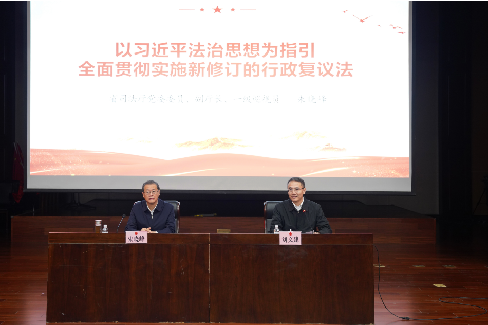 培训中,朱晓峰以“以习近平法治思想为指引 全面贯彻实施新修订的行政复议法”为题授课。朱晓峰指出,要深刻认识修订的重要意义,充分发挥主渠道作用;要准确把握修订重点内容,推动行政争议实质化解;要抓住实施重大机遇,加强复议与审判有效衔接,形成工作合力,确保行政复议法全面、正确贯彻实施。