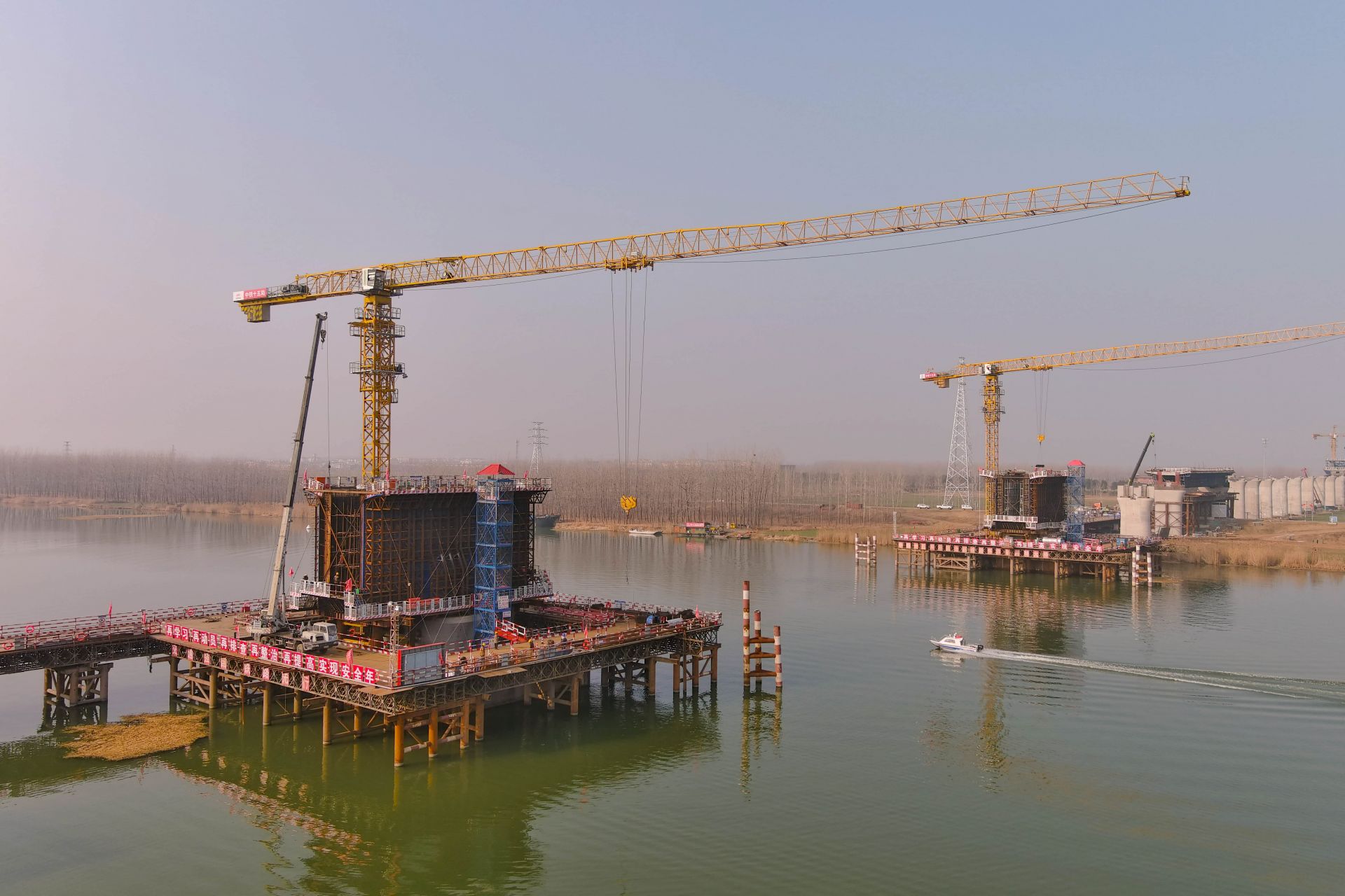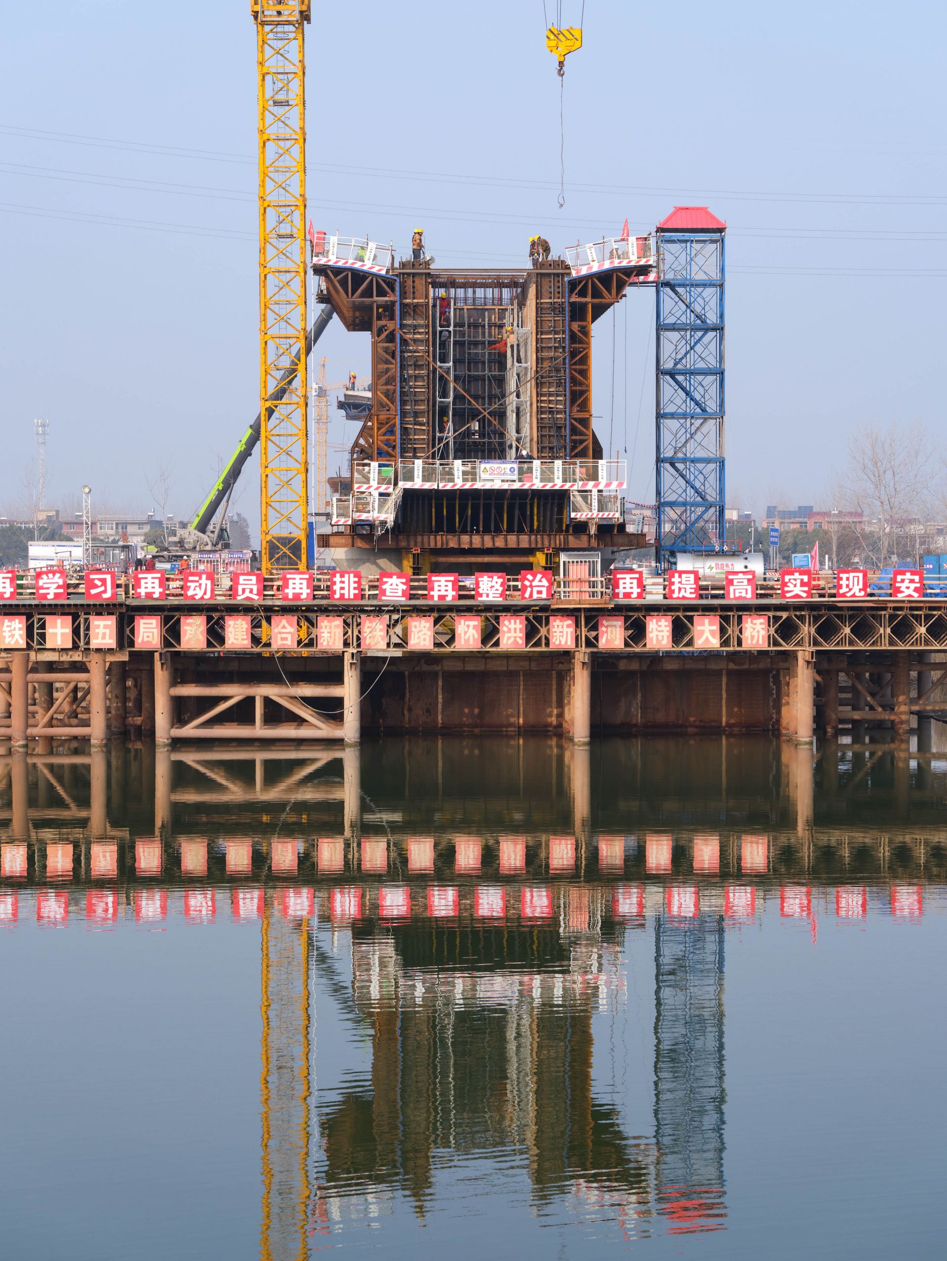 寒冬时节,虽寒风凛冽,但无法阻挡中铁十五局集团承建的新建合肥至新沂铁路安徽段站前Ⅱ标怀洪新河特大桥建设的步伐。