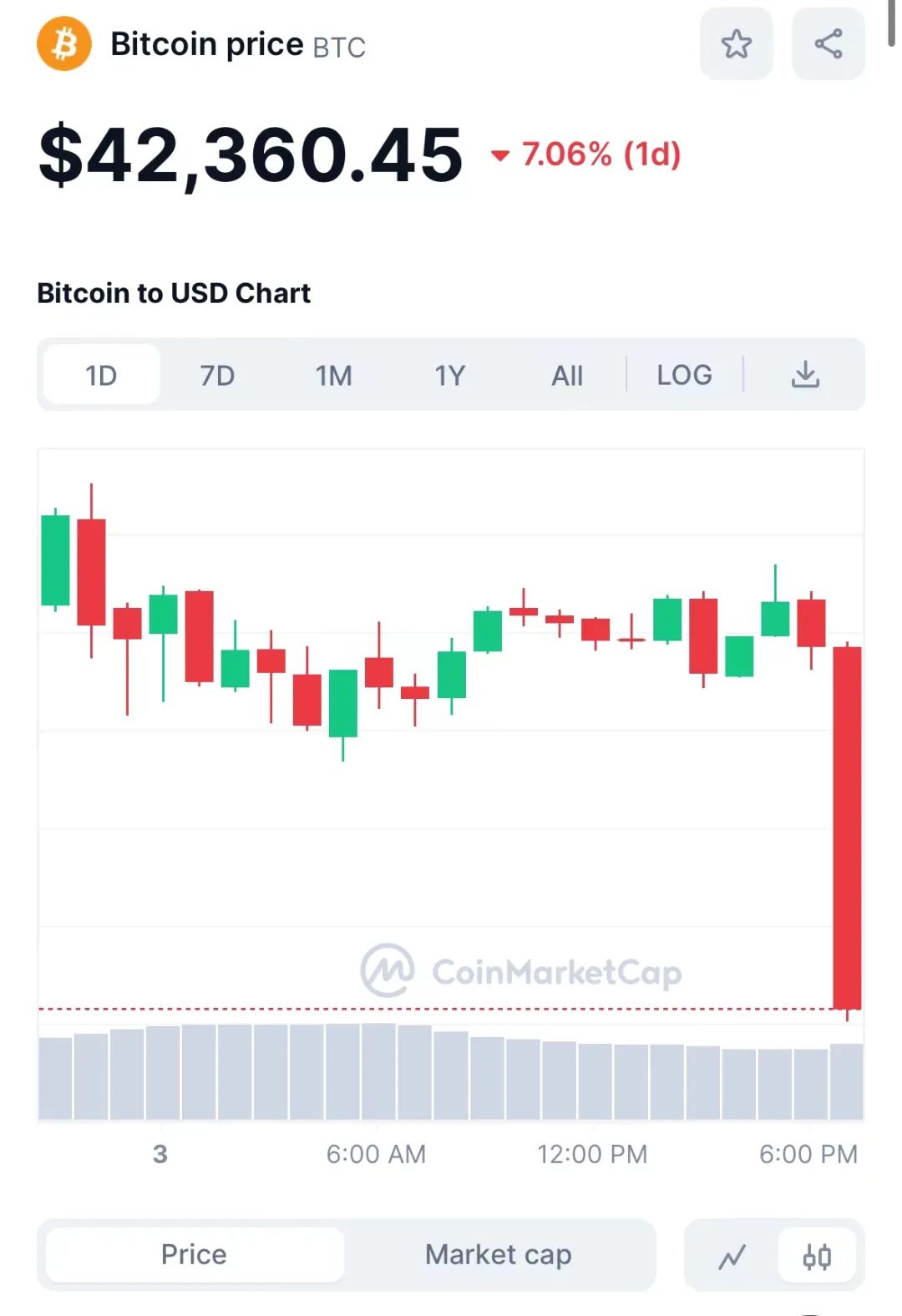 虚拟货币市场遭遇抛售风暴! 1月3日20时,比特币价格突然跳水,短短10分钟内,暴跌超4000美元。截至21时20分,比特币价格短线止跌回升,暂报42360美元。