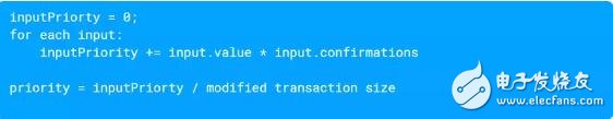 之后,Bitcoin XT还推出了一个公式,指出优先级大于或等于以下COIN * 144/250阈值的交易不需要付费,其中COIN为100 000 000 satoshis(1 BCH)。即priority 》= COIN * 144/250。 优先级计算为(伪代码):