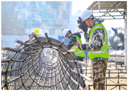 ▲1月4日,在天津市和平区南门外大街商圈北部片区城市更新项目现场,工作人员在进行焊接作业。当日,该项目重点工程泰达海信广场及泰达中心正式开工建设。 新华社记者赵子硕摄