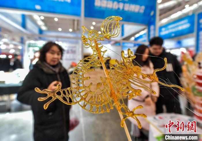 非遗集市区,刚刚制作的龙形糖画吸引市民。中新网记者 刘新 摄 1月21日,新疆乌鲁木齐市,2024(第十六届)新疆新春年货博览会在新疆国际会展中心开幕。据介绍,本届年货博览会划分12个主题展区、800个国际标准展位,集“中华老字号”及名优品牌产品、农产品、进口商品、绿色休闲食品、酒类乳饮、冷冻食品、水产海鲜、纺织服装、非遗年庆产品等万余种来自全国各地的“宝藏”年货,市民可一站式选购所需商品。 新疆新春年货博览会在新疆国际会展中心开幕。中新网记者 刘新 摄 新疆新春年货博览会上的龙年文创产品。中新网记者 刘新 摄 新疆新春年货博览会在新疆国际会展中心开幕。中新网记者 刘新 摄 新疆新春年货博览会在新疆国际会展中心开幕。 编辑:孙建胜