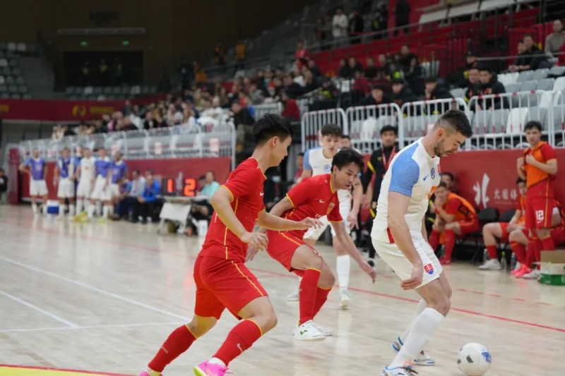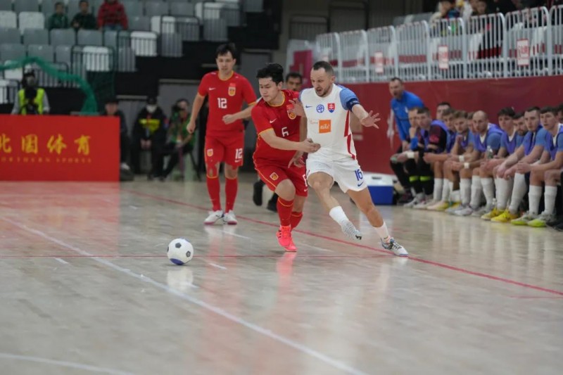 战术定乾坤,中国队惜败斯洛伐克队 第二场比赛,中国队迎战斯洛伐克队,现场吸引了众多球迷入场观赛、加油助威,氛围达到顶峰。对决中,中国队充分发挥反攻优势,在先失一球的情况下奋起直追,7分钟时,中国队5号凯赛尔在快速进攻中,抽射破门,将比分逼平。随后中国队17号陈智恒左路得球,小角度抽射得手,以2:1领先。在上半场即将结束时,斯洛伐克7号球员接队友倒三角传球将比分扳平,上半场以2:2结束。 下半场易边再战,斯洛伐克队主打出其不意,16号球员推射和点球得手,比分来到2:4,比赛随后进入焦灼状态。后半程,中国队开启超人战术收获成效,在最后两分钟中国队15号球员小角度破门,将比分追至3:4。而斯洛伐克队顺势打出时间差,在结束前14秒,17号球员头球再进一分,比分稳定在了3:5,由斯洛伐克队取得胜利。