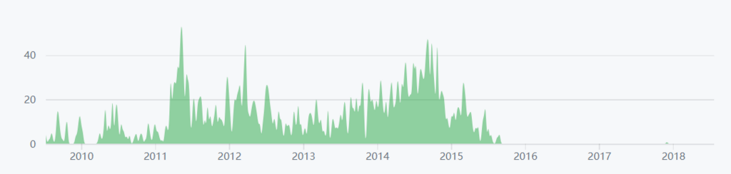 表1 Github分析 数据来源:Github *除该项以外,其他数据均只代表项目核心代码库的水平。 从Github提供的图表来看,近两年DOGE的代码提交和贡献者已经基本趋近于零。