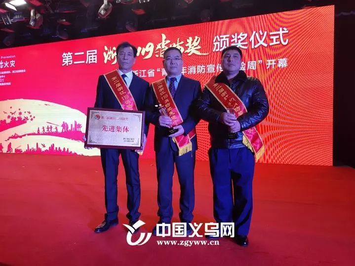 12月14日,由浙江省应急管理厅主办的第二届浙江119消防颁奖仪式在杭州举行,大会表彰了全省119消防奖先进集体10个、先进个人20名。 义乌佛堂专职消防队,浙江中国小商品城集团股份有限公司党委书记、董事长赵文阁,苏溪镇殿下村综合体微型消防站的站长楼国军分别获得第二届浙江119消防奖先进集体、先进个人荣誉称号。