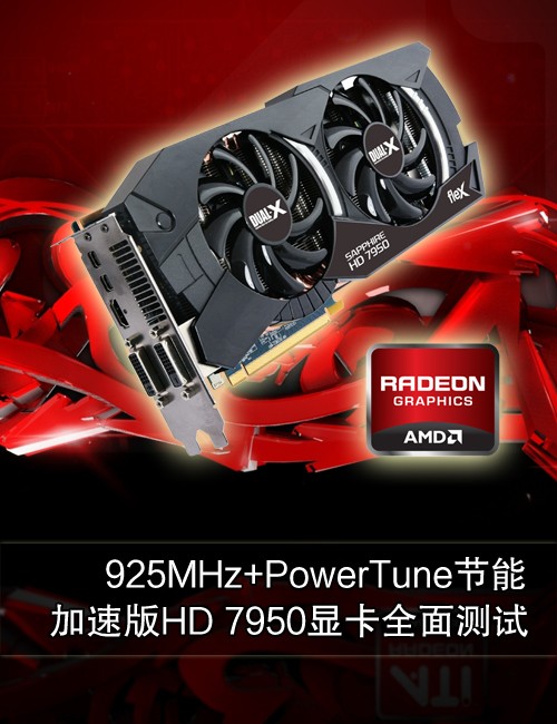 作为显卡性能的核心指标,核心频率和显存频率直接决定显卡的游戏性能表现,当然也直接与功耗挂钩,正所谓功耗和性能二者不可兼得,为降低频率提升带来的功耗上升,新版Radeon HD 7950全面引入了PowerTune节能技术,进一步降低显卡功耗。 作为AIB优异合作伙伴,蓝宝石也在AMD宣布新版Radeon HD 7950第一时间发布了新的Flex HD 7950 Boost显卡,产品继续主导非公版用料设计和散热的同时,全面融入了PowerTune技术和核心提速,显著提升了显卡综合性能。 AMD新版Radeon HD 7950 Boost虽然不像大哥那样冲破GHz,不过频率也有了长足的进步,并且引入了全新的PowerTune with Boost加速技术,显卡可以根据负载实时动态调节GPU的频率,达到性能和节能的双赢。