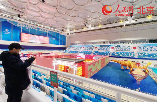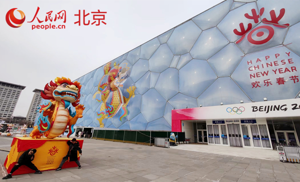 “吉祥龍”景觀裝扮國家游泳中心。 人民網記者 李博攝 人民網北京2月2日電 (記者李博)眼下,距離龍年春節越來越近,在北京奧林匹克中心區,一幅高30米、寬30米,面積近1000平方米的“吉祥龍”景觀出現在國家游泳中心外立面“藍色泡泡”上,與奧林匹克中心區龍形水系遙相呼應,吸引眾多游客打卡。 國家游泳中心又稱“水立方”、“冰立方”,緊鄰國家體育場“鳥巢”。作為“雙奧”場館,水立方�冰立方賽后充分發揮雙奧遺產資源優勢,通過水冰之間場地轉換,持續提供優質項目和服務,吸引大眾走進奧運場館,彰顯了北京冬奧會可持續發展的理念。
