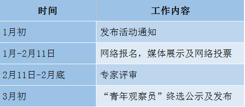 四、活動內容 面向全國18-35周歲青年,通過徵集微視頻、文章、攝影等形式,尋找有敏銳視角、有社會責任感,且洞察力、表達力強,能夠參與各種形式實踐活動併發表真知灼見的“青年觀察員”。三種報名形式可任選: 1、微視頻徵集 提交一段個人出鏡的視頻,視頻內容可包括:在家鄉過春節的歡樂場景;口播家鄉的變化;在視頻中與親朋好友的互動;親人訪談社會發展的獲得感;自拍和鄉間的青山綠水合影等(30秒以上,不超過5分鐘)。報名時提交個人風采照片,並按要求提供視頻連結(最好是騰訊視頻連結)。 報名網址: