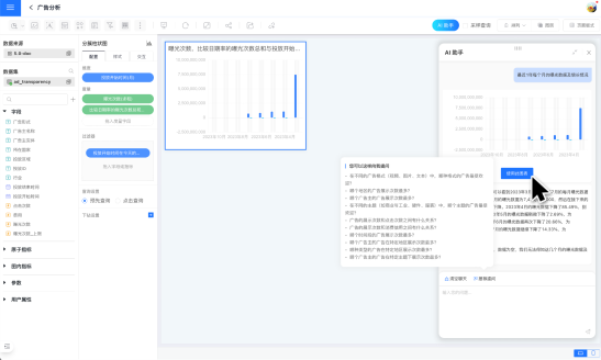(图:用户可通过AI Copilot进行交互式的提问与分析) 此外,在5.0版本中,衡石科技还灰度发布了AI Copilot实验室功能,针对特定的合作伙伴开放,待功能完善后向全体客户开放。 “BI不仅是AI绝佳的落地场景之一,也是助推AI落地的必要条件。”刘诚忠表示,经过多年探索,业内已经认识到NLP2SQL为实现路径的ChatBI(自然语言到结构化查询语言)在应用上仍有一些缺陷,也就是说单纯的数据+AI无法有效地控制精确度。在商业分析的场景中,对于语义的理解准确程度要求明显要高于目前的AI能力水平。 “未来十年,BI始终会瞄准赋能一线业务的方向,而AI是其中关键的助推器,帮助BI的全行业落地普及走完最后一公里,没有一个企业应用不希望拥有一个智能化的商业分析助手加持。”刘诚忠说。 引领商业分析进入 AI+BI 智能新时代 除了强大的指标管理平台与AI交互能力之外,衡石科技此次5.0版本在功能上继续引领BI行业,5.0版本上线了全新的指标模板商店,并进一步更新了复杂布局的中国式报表。 据悉,新上线的指标模板商店,能够为不同客户提供大量优秀BI案例的“样板间”。通过运用衡石产品,商业伙伴能够高效建立完善地业务指标体系以及分析看板,既能赋能业务,也能通过大量其他领域厂商地优秀案例碰撞出灵感的火花。 5.0版本还对图表可视化分析进行了大幅优化,支持图表多级联动过滤,同一时刻可以使用多个图表中的条件对仪表盘中的所有图表进行联动过滤,分析多条件下的业务场景数据。据悉,某科技创新公司利用HENGSHI SENSE的指标进行客服的售前效能分析,不仅能帮助售前人员完成标准作业,还能直观地将效能可视化。