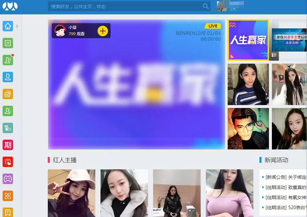 ▲人人公司股价走势 痛苦转型:游戏、直播、二手车……如今登陆人人网,你会发现一副完全陌生的画面。 首页推送的都是美女直播,而不是熟悉好友的动态。不仅如此,在每经小编(微信号:nbdnews)200多人的好友圈中,最近一个状态更新还是在2014年4月。不难看出,人人网的社交属性已经难觅踪影,用户粘性也早已不再。