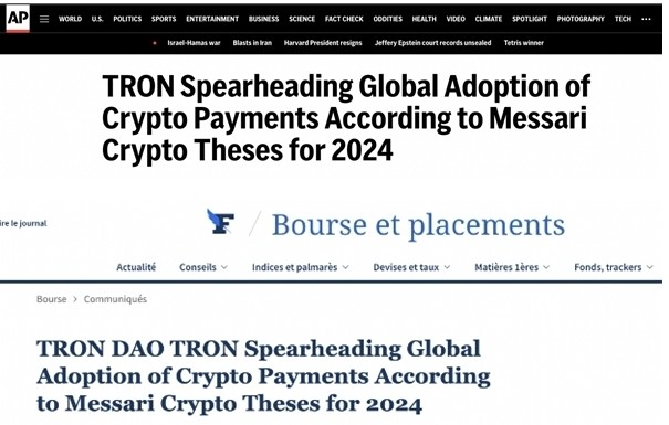 近日,金融时报、费加罗报及美联社等海外权威媒体就波场TRON在全球加密支付领域的重要进展发布了相关报道。报道引述加密研究机构Messari 《Crypto Theses for 2024》年度报告,重点强调了波场TRON在推动全球加密货币支付尤其是稳定币USDT应用方面的显著成就。 报道提到,波场TRON凭借其完善的基础设施和致力于普及加密货币的承诺,在推动全球支付模式转型中发挥着重要作用。目前,波场TRON已拥有超2亿个账户,处理超60亿笔交易,波场版 USDT普及率也正在急速上升。 报道认为,波场TRON始终致力于打破传统支付的局限,构建面向所有人的生态系统。 Messari发布的报告进一步有力地印证了波场TRON在推动全球数字化解决方案转型中发挥的重要作用。