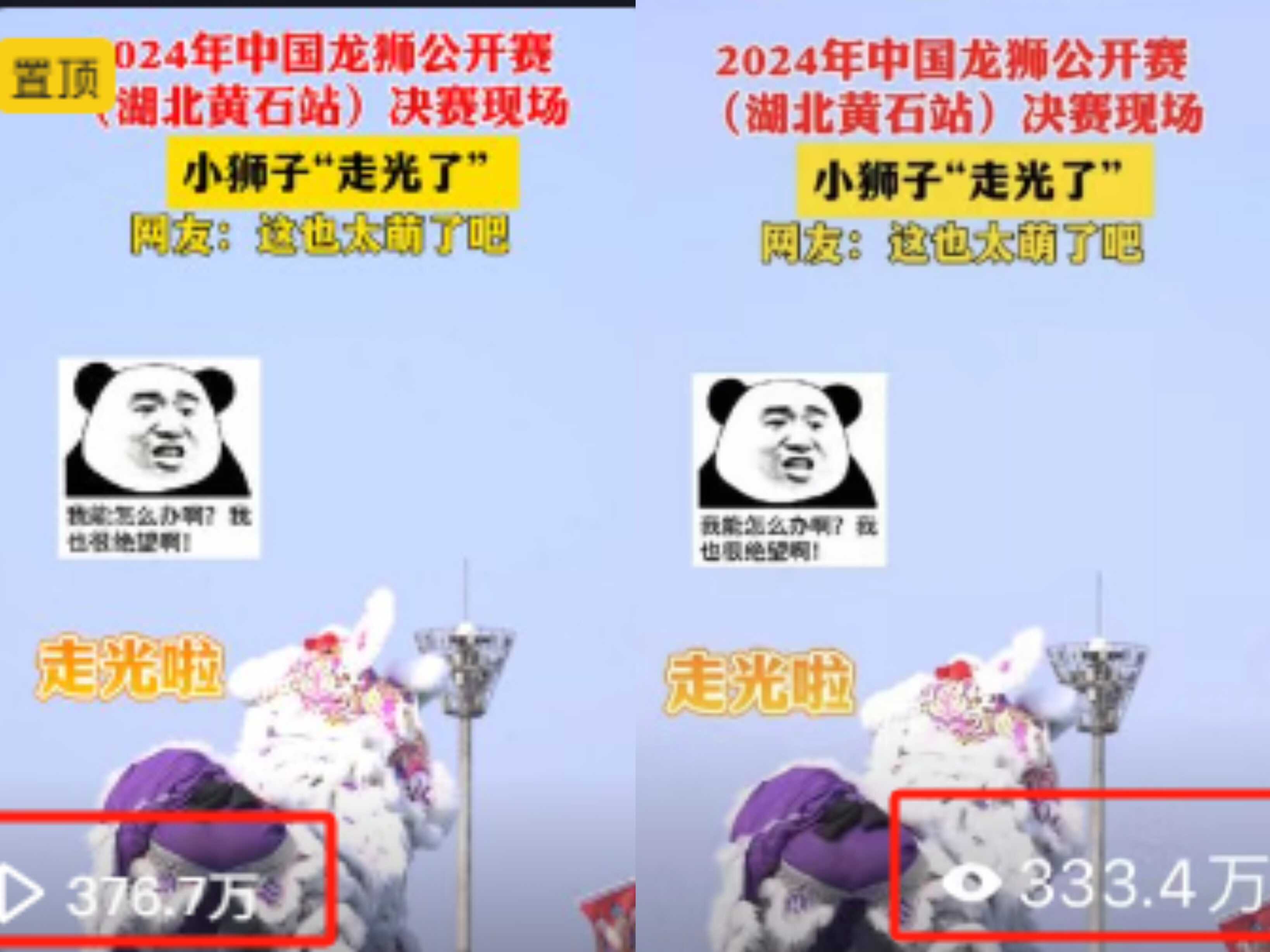 2月16日、17日,2024年中国龙狮公开赛(湖北黄石站)在黄石人民广场隆重举行,来自全国各地的顶尖龙狮队斗奇争霸,比赛精彩纷呈。黄石日报视觉新闻部对比赛进行了现场直播,推出了系列短视频报道10余条。报道引发全网观看狂潮,全网累计点击量1500万以上。其中全程直播4场,黄石日报抖音号、黄石日报视频号及黄石+APP共有400万人次在线观看。截至18日11时,短视频报道全网点击量突破1100万。诞生了《萌狮后空翻下桩》《小狮子卖萌》《南狮高桩》等多条爆款,其中《小狮子卖萌》单条播放量破700万,数据还在持续增长中。( 程武)
