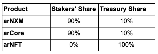 索赔机制: 用户提出索赔后,将触发审核程序并提交给Nexus Mutual进行审议。Armor代币持有者还将参与Nexus Mutual的索赔审批和支付流程。如果确认付款,该金额将被发送到Armor的支付资金库,然后分配给受影响的用户。 协议收入: 以下是该项目截至2021年2月更新的利润分成费用表。