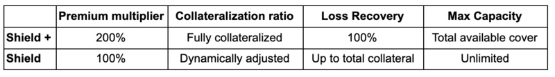 arCORE 是一种即付即用的保险产品。Armor 通过一个流动支付系统跟踪用户资金的确切数量,因为它们可以动态地跨越不同的协议。arCORE 的技术底层集成了arnft,它们在被分解后溢价出售。arCORE允许更多的创新产品设计,并展示了 DeFi 生态系统的可组合性。 arCORE的产品收取较高的保险费,以补偿 arNFT 质押者承担的不能完全销售保险的风险。目前,arCORE的保费乘数是161.8% ,这意味着价格将比直接从 Nexus Mutual 购买的价格高出61.8%。 对于额外的保险费,90%将返还给arNFT的支持者,10%由 Armor 作为管理费收取。以1.618倍的保费乘数和90% 的收入份额计算,利用率必须大于69% 才能使 arNFT 的投资者们获利。如果售出的保险数量少于池中质押数量的69%,那么这些质押者不得不自行承担保险费用。 arSHIELD: arSHIELD是流动性做市商(LP)代币的保险存储库,其中保险费自动从所赚取的LP费用中扣除。arSHIELD本质上创建了具有保险的LP代币,用户无需支付预付款。 arSHIELD仅涵盖流动资金池的协议风险。例如被保险的Uniswap Lp代币仅涵盖Uniswap的智能合约受到损害的风险,而不能涵盖基础资产的风险(例如基础资产协议被黑客入侵)。 arSHIELD只是一个重新包装的arCore版本,有两个不同风险等级的版本。 Shield +保险库是最安全的版本,可以保证赔付。它是完全抵押的,但承保能力有限。它具有200%的高乘数,使其价格比Shield Vault高出两倍。 Shield Vault是风险较高的版本,索赔支出可能无法完全偿还,因为这取决于黑客入侵期间池中的可用资金。为了弥补额外的风险,它只有100%的溢价乘数,这意味着它的价格与直接从Nexus Mutual本身购买的价格相同。保险容量设计为无限制的,因此用户很难不对抵押率感到满意,因为它可能不完全抵押。