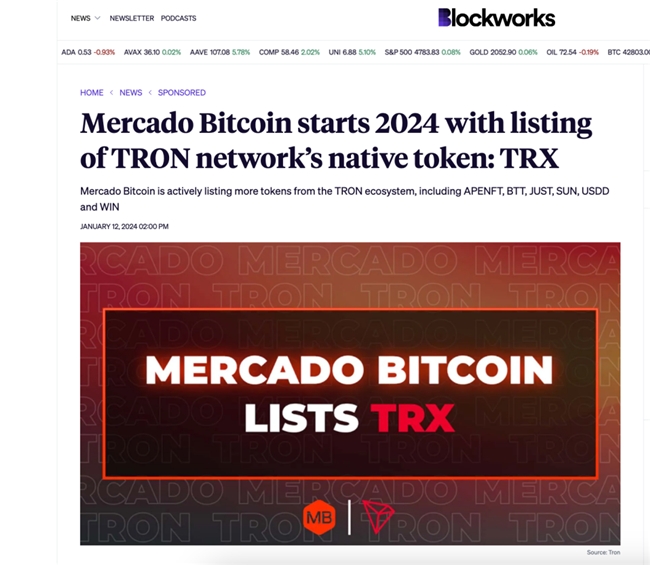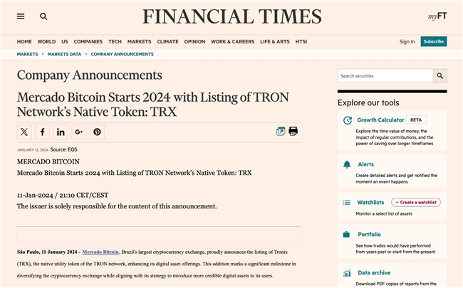 英国金融时报关注TRX登陆Mercado Bitcoin交易所:波