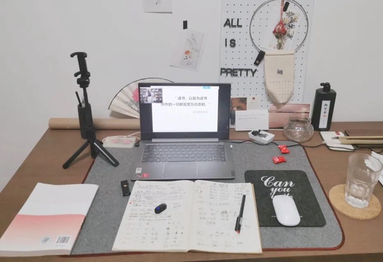 课堂一开始,高子然老师并没有直接讲解知识点,而是围绕《我们仨》这本书给同学们讲述了钱钟书和夫人杨绛相知、相爱、相守的故事,语调和缓,温柔轻盈,娓娓道来。 网课更加考验学生的学习专注度、积极度和自学意识。由于教学空间的分离,老师需要针对网课的特殊性,提前安排好更多样化的教学环节,激发学生的学习欲望,同时加强互动,让学生的注意力始终维持在课堂上。 每讲解一本名著,高老师都会对作品进行完备且深入的阅读,并搜集各种资料,经过提炼思考形成最适合课堂的表达。同时,通过贴近生活的故事导入课程,引起同学们的兴趣。解读《我们仨》时,两位大家的生平事迹也能对同学们有所启发,进而能直观感受到阅读的魅力。课堂上,同学们表现出来的领悟和迁移能力,也正是高老师想要达成的学习效果。 溜得起飞!手写板+平板玩转线上板书 数学教学部 王妍老师 讲授课程:《线性代数》 “作为一门新课程,需要让同学们了解其教学目的和基本内容。”课堂开始,王老师利用“鸡兔同笼”的简单引例让大家更好地认识、理解方程,接着抛出问题:“遇到更为复杂的方程该如何去化解?”通过化解方程的背景,循序渐进地引出课程中求解线性方程组的理论框架,再以计算机运算和简单的图像旋转为例,告知同学们线性代数的具体应用。 线上教学,如何让同学们看到清晰的板书,更好地跟上教学思路?王老师经过反复试验,利用手写板搭配平板上课,顺利解决了线上板书这一大“难题”。“课上,同学们都积极回应我”,课程运算量大,符号和数字繁杂,同学们学习的兴致却很高。 王老师注重学生的学习实效。她会叮嘱大家提前预习,认真上课,保质保量完成作业,并运用思维导图归纳总结,串联和拓展各个章节的知识点。 弹幕互动!拉近师生间的距离 经济学院 黄思佳老师 讲授课程:《博弈论》