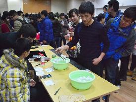 学生记者 李昊泽 邓艾汶 摄影 本网讯 12月31日的晚上,学校里都有些什么样的活动让我们挥手告别如今去迎接新的一年呢? 东区:精美食品与欢乐游戏的组合 最新鲜的变化来自食堂。为了迎接新年,各食堂开展了新年夜宵活动,推出了不少新年特色菜品。走进公二,好像是走进了视觉和味蕾的盛宴。炸薯条,果味藕片,铁板鱿鱼头,翻砂香芋,酱板鸭等等热腾腾的新菜令人垂涎三尺。 而在晚7点之后,一号学生公寓三层招聘大厅举办了盛大的元旦游园会,为元旦带来了热闹而喜悦的气息。 互动游戏是整个游园会的重头戏。整个大厅被分为现场游戏区和兑奖区两块,在现场参与各社团活动的同学们可以根据游戏表现得到奖券,攒够一定数目的奖券就可以去兑奖区兑换精美的元旦礼品,礼物从动物公仔到电子体重计应有尽有。 共有28个社团组织带来了32个游戏,每个社团的摊位前都有排队参与游戏的同学。现场的游戏形式五花八门,也许你认为用筷子在规定时间内夹一定数量的乒乓球和魔术社这三个字并没有多大联系,但魔术社的社员们却用灵巧的双手告诉你,对于一名好的魔术师而言,夹乒乓球也是一门必修课。筷子使累了,社员们还即兴摆开纸牌,为围观的同学们表演了精彩的偷换牌魔术。 UBG桌游社的游戏场地不时传来开怀的大笑声。说到桌游,不少人就会想到三国杀、狼人等智力性游戏,而今天桌游社则设计了名为“谁是猪队友”的欢乐游戏:一人随机从写好词语的牌堆中抽出一张牌,然后掷骰决定用“动作、画图、唇语”中的一种将其表演出来,再由另外一人猜测。现场不时传来“你怎么这都猜不出来”“猪队友!”的声音,带热了整个会场的喜悦气氛。 农研会的“种子画制作”也相当吸引眼球。同学们亲自设计的图案和代表着粮食重要性的粗粮结合在一起,构成了一幅幅具有特殊魅力的小艺术品,赏心悦目的同时也能够让大家乐在其中。 游园会现场还有校学生会宣传部企划的爆破音吹蜡烛、阳光车协的自行车套圈等游戏,同学们玩的不亦乐乎。大多数同学都满载着赢来的奖券,在舞台处兑换了自己心仪的礼物。 来自动医142班的吴申彦是UBG桌游社的活动工作人员之一,在主持游戏的空闲中他也参加了其它社团的活动,并兑换了一个自己喜欢的小羊公仔。“今天是第一次参加这么多社团一起举行的活动,”他捧着奖品说,“大家都玩的很HIGH,这样过年感觉非常开心。” 西区:游园会加放电影 31日晚,西区和园四层活动大厅灯火通明,一片欢声笑语,墙壁上装饰着彩色气球,条桌上堆满了零食,这是西区的游园会。 由生物学院5位班长带来的幽默舞蹈《贴膜BOYS》将会场气氛推向高潮,歌曲《滑板鞋》与《真心英雄》的诡异唱腔让全场爆笑不止。歌曲《听,是谁在唱歌》、古筝《渔舟唱晚》、相声《新闻联播》赢得了全场的掌声。 游戏“方言猜歌”、“吃辣条”、“吹鸡毛”进一步活跃了全场的气氛,有人站在座位上给参赛者加油,有人跑到台前鼓掌助威,随游戏送出的小礼物给同学们的跨年夜带去了欣喜。 游园活动由校研究生会主办,生物133班承办,生物131班、生物132班、试验131班协办。据悉,和园四层在31日晚还为同学们放映了电影。 (责任编辑:admin) |