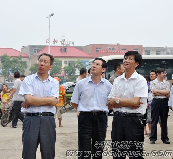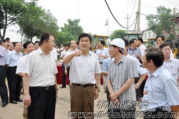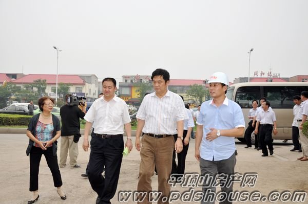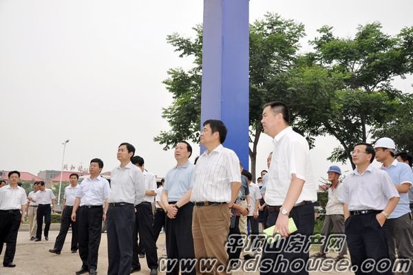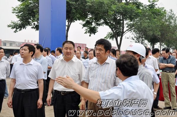 平顶山市市长陈建生(中) 经济观摩团人员先后实地观摩了各县(市、区)、高新区、新城区的70多个项目。这些项目从不同侧面反映了各地产业集聚区发展、城镇建设、新农村建设、社区建设、旧城改造的整体情况,体现了各地抓经济、上项目的思路和举措。观摩活动中,大家详细察看了每一个项目的建设和发展情况,不断交流各自发展中的一些经验和做法。