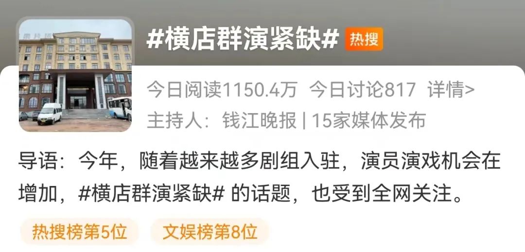 “横店群演紧缺”!3月6日,这个话题冲上热搜,受到全网关注。