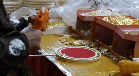 团扇、凤冠、金钗,现在,中式婚庆用品越来越受到大家欢迎,需求量也在不断增加。宿城区埠子镇一家婚庆用品制造公司就抢抓中式婚庆用品市场需求,从年后初六开始不停赶工,确保备货充足,开启拼搏的一年。