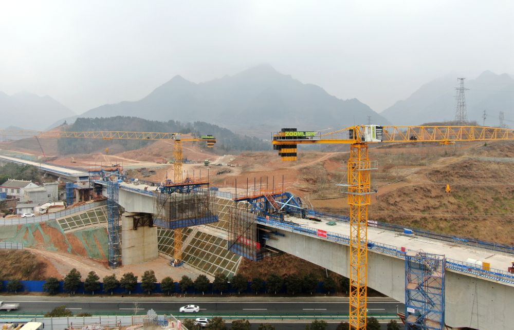 3月15日拍摄的西十高铁陕西段山阳跨福银高速特大桥施工现场(无人机照片)。 目前,在位于秦岭山区的西(安)十(堰)高铁陕西段施工现场,参建单位中铁十一局严控施工节点计划,加速推进项目建设。 西十高铁开通后,西安至十堰将实现1小时内到达,西安至武汉将实现2.5小时左右到达,对加强关中城市群与长江中游城市群联系,带动沿线社会经济发展等具有重要意义。 新华社记者 李一博 摄