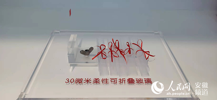 凯盛集团研制的30微米柔性可折叠玻璃。人民网 胡雨松摄 “这些产品都是由我们研究院生产研发的。”10月10日上午,在凯盛集团-中建材蚌埠玻璃工业设计研究院展示厅内,相关负责人向人民网安徽频道展示了碲化镉光伏玻璃的应用成果,一块发电玻璃被红色窗帘遮挡,拉开窗帘,连接在玻璃上的三个灯泡就会发光。“不管是在室内还是阴雨天,只要有一点光,这块玻璃就能发电。”如今由凯盛集团研制生产的碲化镉光伏玻璃,已经应用于2022年北京冬奥会相关比赛场馆建设,蚌埠市内一些警务站也正在使用这种玻璃进行供电。 距离展示厅不远,是世界单体规模最大薄膜光伏建筑一体化应用示范项目,自2020年2月28日开始运行。12万平方米的厂房从远处看并无特别,然而厂房的外墙和屋顶都安装上了发电玻璃,在运行一年的时间内,累计发电超过1100万千瓦时,收益约900万元。按照运营时间25年计算,项目累计收益约2.2亿元,节约燃煤约11.7万吨,减少二氧化碳排放约26.5万吨,为推进资源全面节约和循环利用,实现“碳达峰、碳中和”作出贡献。 硅基新材料在未来的应用场景有多少种可能?在研究院一楼展示厅内,展示了凯盛集团研制出的各类产品,0.12毫米超薄玻璃和30微米柔性可折叠玻璃能用在手机上,国内首片高品质中性硼硅药用玻璃管则为疫苗存储提供了保障。 正如中国工程院院士、玻璃新材料技术专家彭寿说,以蚌埠为代表,中国在新型显示玻璃、新能源玻璃、特种玻璃制造等领域取得了不俗的成绩,实现了从跟跑到并跑、领跑的根本性转变,部分领域已达到国际领先水平。 以聚乳酸制品所代表的生物基新材料,也是蚌埠市近年来发展的重点。