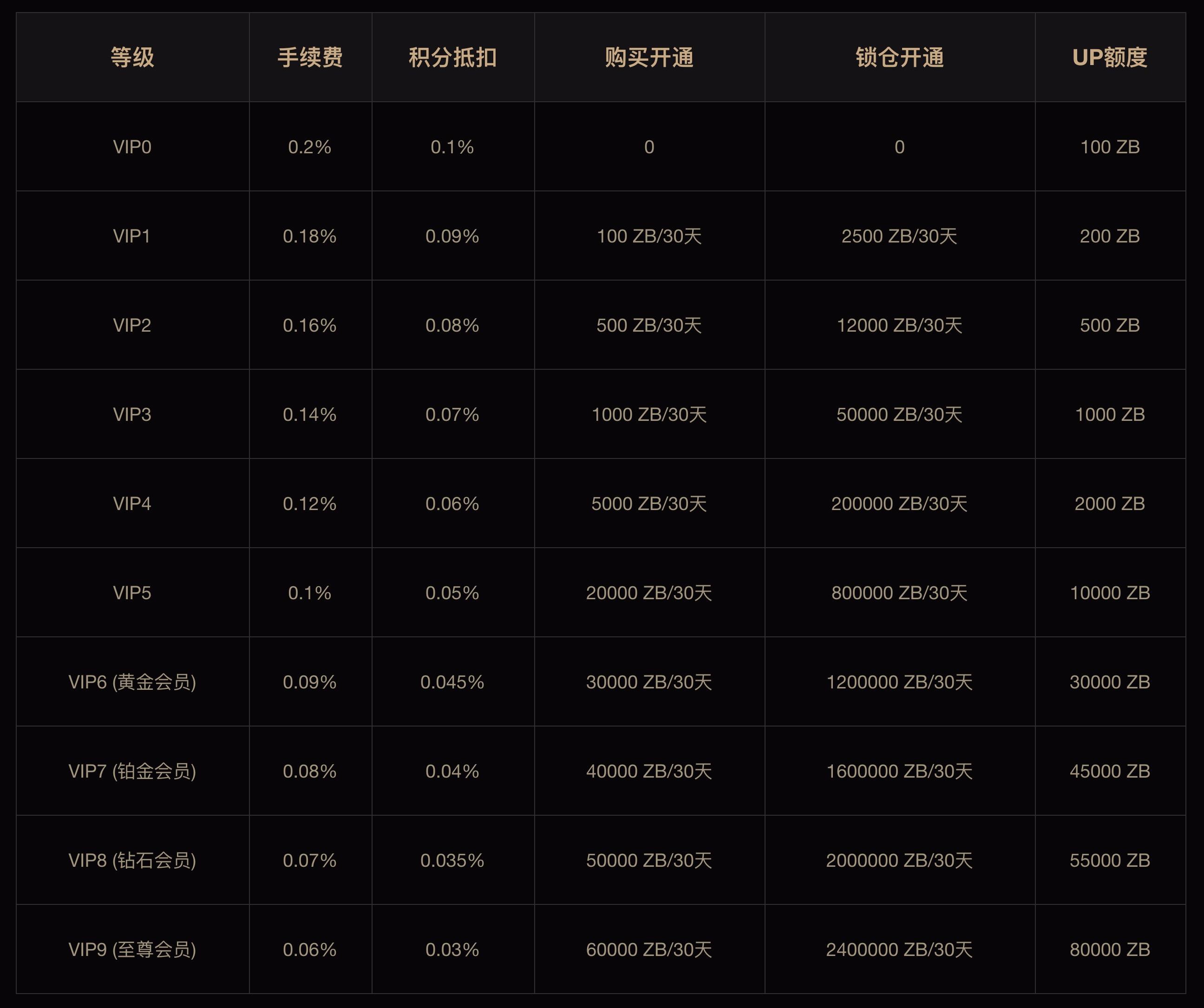 中币(ZB.com)公布全新 VIP 体系,交易费低至 0