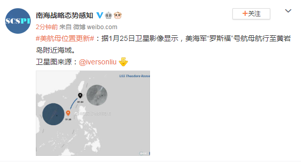 “罗斯福”号航母最新行踪曝光 已航行至黄岩岛附近