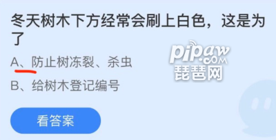 冬天树木下方经常会刷上白色,这是为了 正确答案:防止树冻裂、杀虫 题目2: