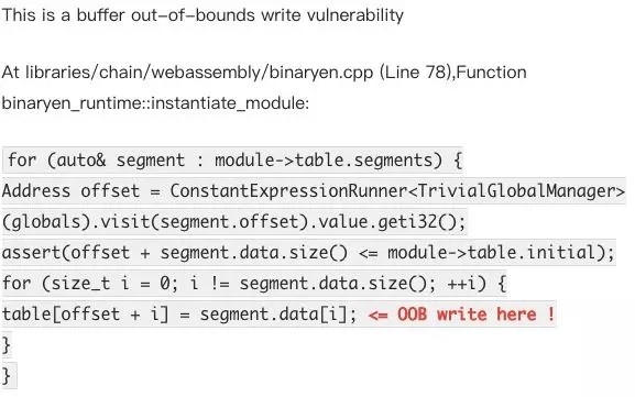 微博中称,如果被非法利用,可以远程攻击控制和接管EOS上运行的所有节点,严重情况下,EOS乃至整个虚拟货币市场都会遭遇滑铁卢。 那这样的攻击具体是如何实现的? 在其官方博客中,研究团队表示这其实是一个缓冲区溢出的漏洞。