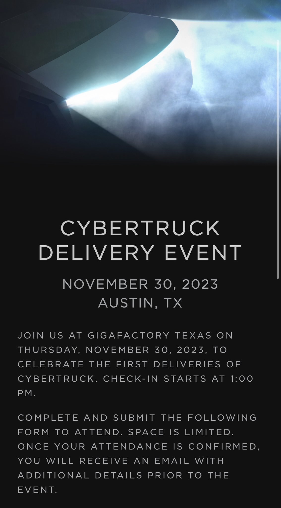 特斯拉Cybertruck新车交付活动将于11月30日在得州超